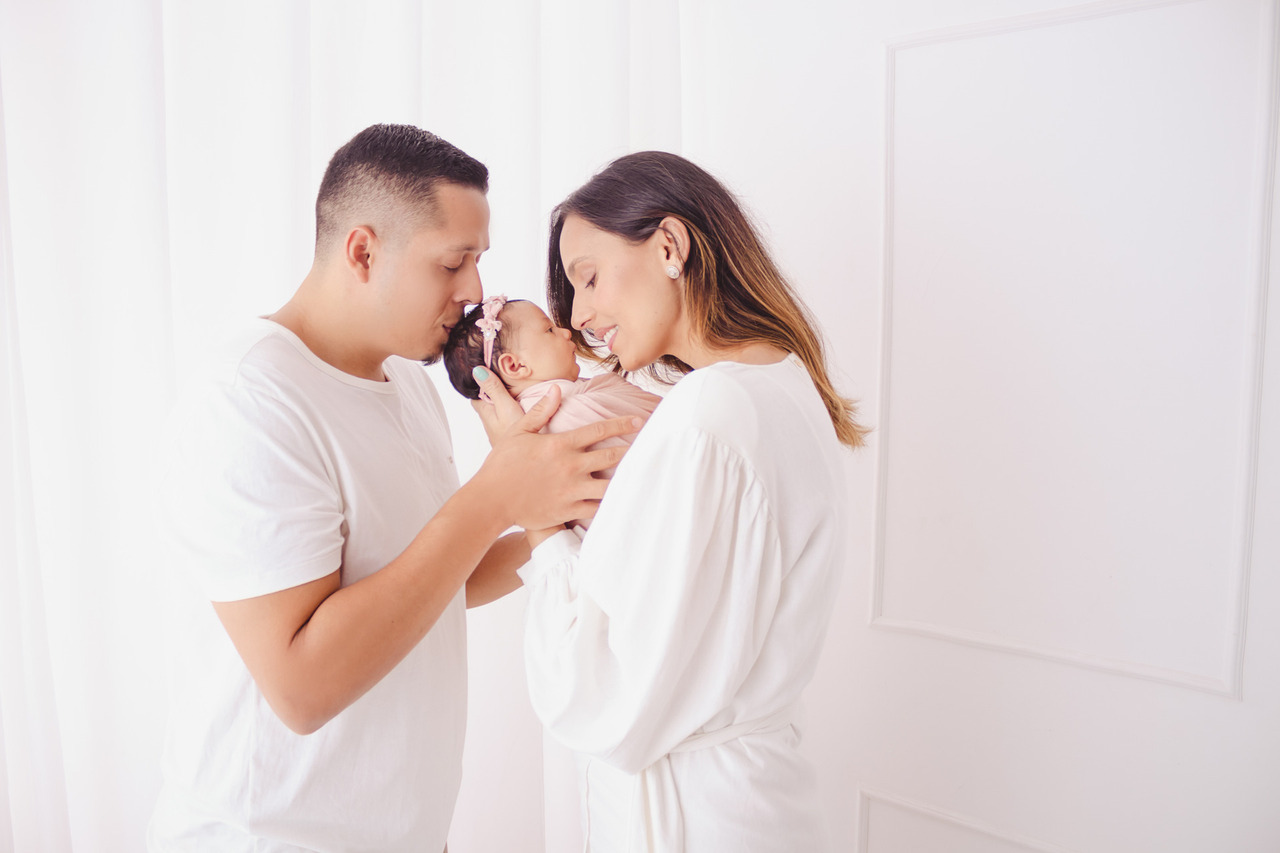 Os pais estarão presentes o tempo inteiro, apreciando seu lindo e precioso bebê. É importante que os pais estejam tranquilos e confortáveis, pois os bebês sentem tudo reagem conforme o comportamento dos pais, principalmente da mamãe. O ambiente estará bem quente, por isso, recomendamos que vistam-se de sobreposições para que possam retirá-las e sentir-se confortáveis.Teremos o prazer de registar o amor entre os pais e o bebê, por isso, sugerimos que venham com roupas claras e leves, como se fossem comemorar a passagem do ano. Para as mamães, recomendamos uma maquiagem leve, em tons nude.
